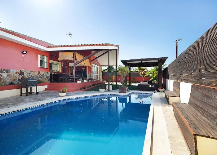 La Villa Goleta El Puerto de Santa María se encuentra a 5 minutos a pie de Playa de Fuentebravia y ofrece un jacuzzi para la relajación de los huéspedes. Con un patio, esta casa de vacaciones está situada a 6 km del Antiguo Monasterio de la Victoria.